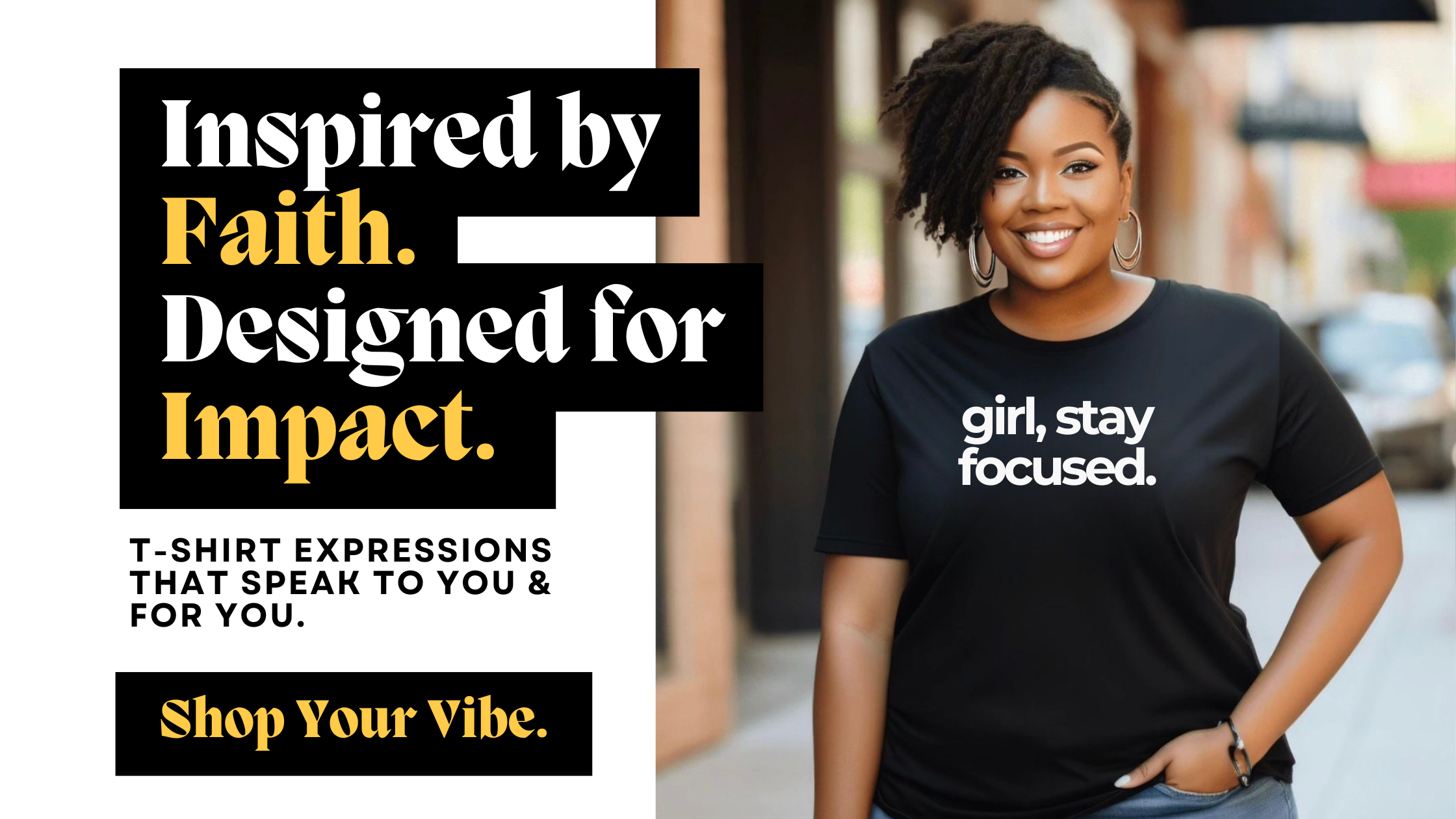 We provide inspirational expressions on apparel & other items to help spread uplifting encouragement. Our powerful expressions are intended to remind everyone to speak life, trust God, and stay focused. Grab a tee & let's spread faith-filled vibes one t-shirt at a time.