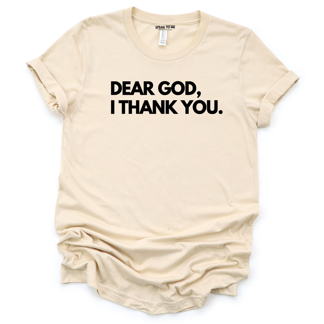With its bold lettering, vibrant design, and inspirational message, this shirt will be sure to bring a smile to everyone who sees it. Step up your wardrobe game and show God just how thankful you are for everything in your life with the Dear God, I Thank You T-Shirt.