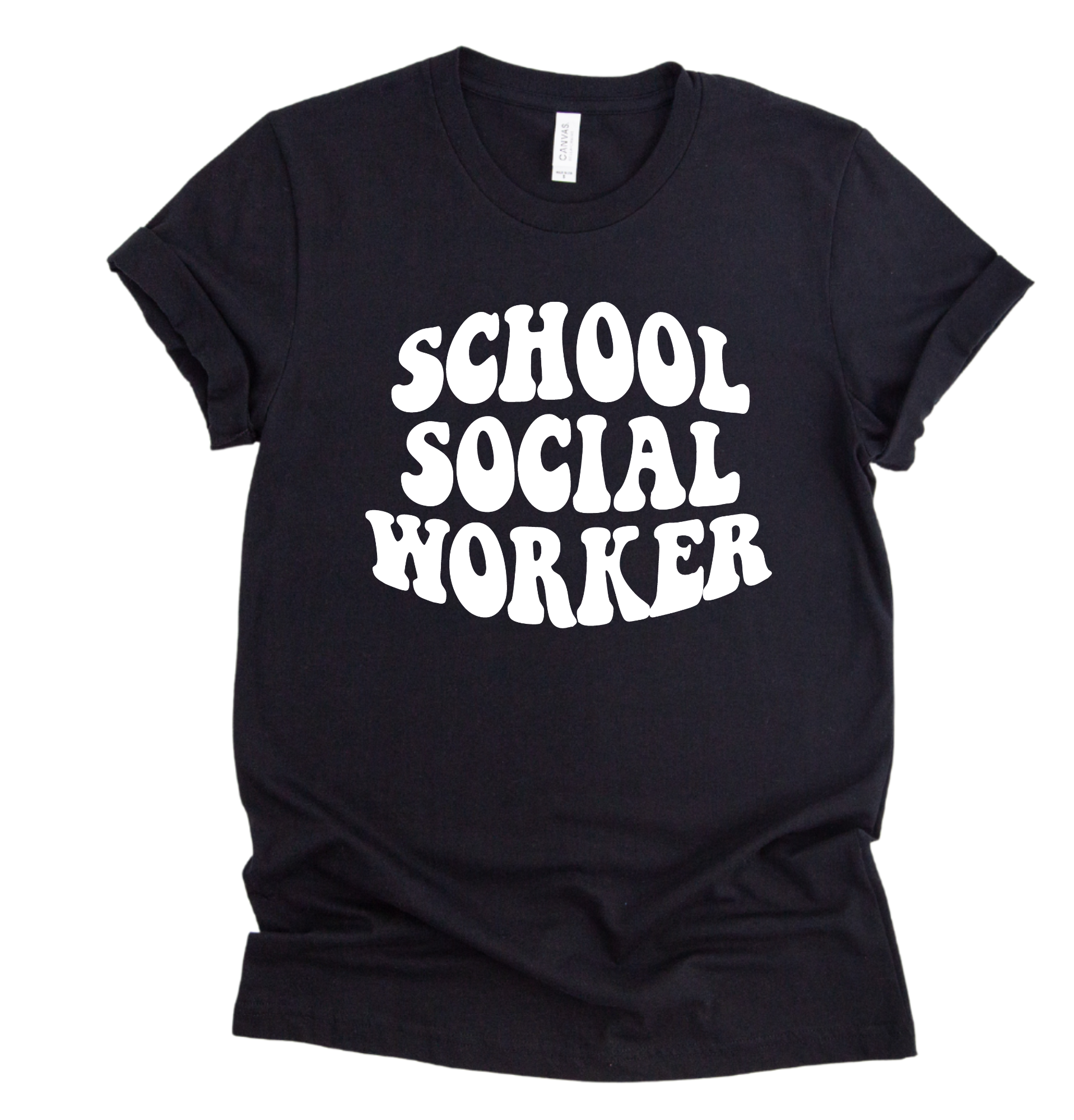 Nothing says "I am a School Social Worker" like this cool, bubble font t-shirt design. From its soft fabric to its easy fit, it will be the perfect addition to your wardrobe. Express yourself with pride and show your commitment to helping improve the lives of children in schools everywhere.