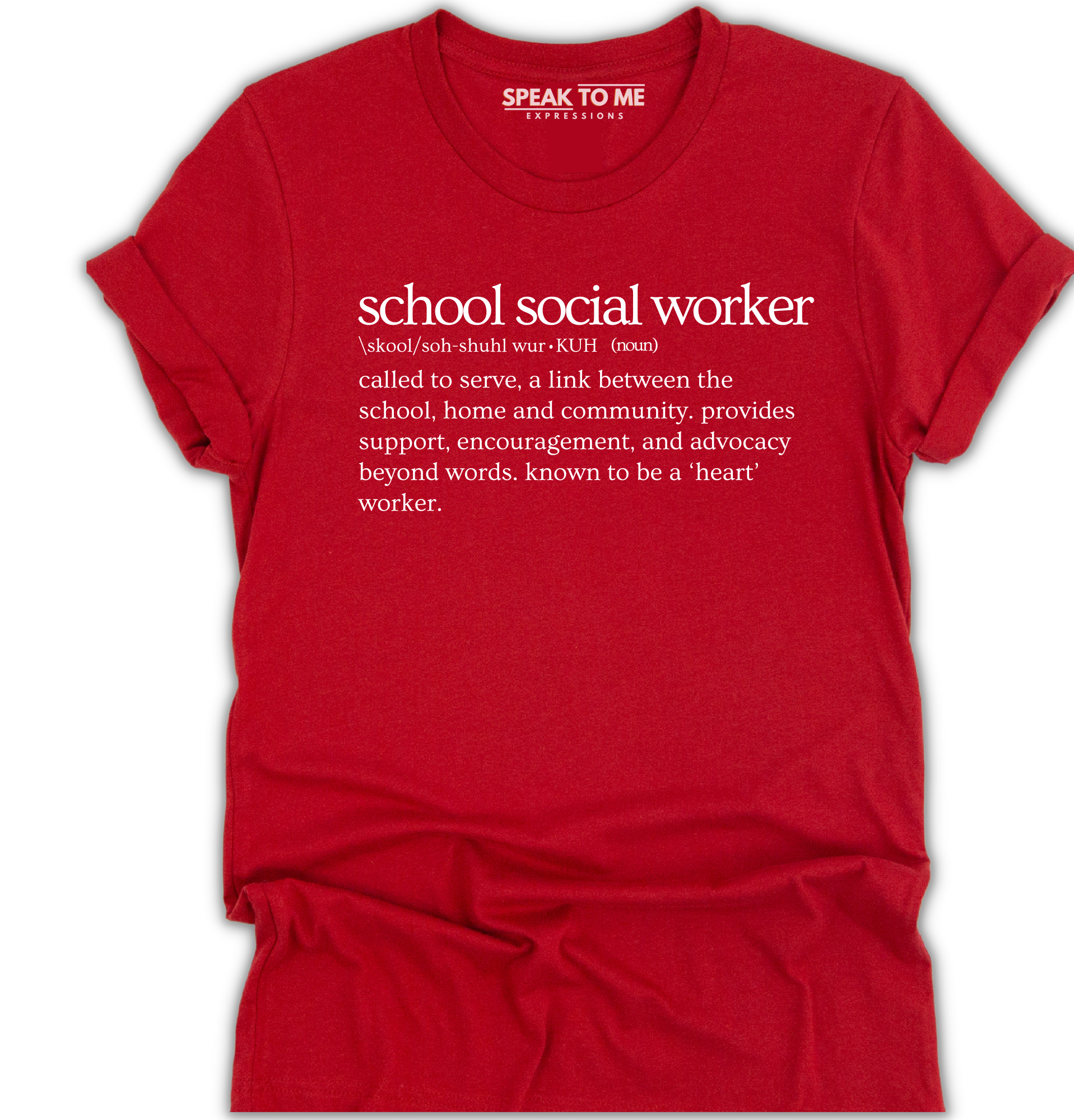 Celebrate the role of a school social worker with our definition t-shirt! Show your love for heart work, advocating for and supporting students and families. SSWs are indeed a vital link between the home, school, and community.
